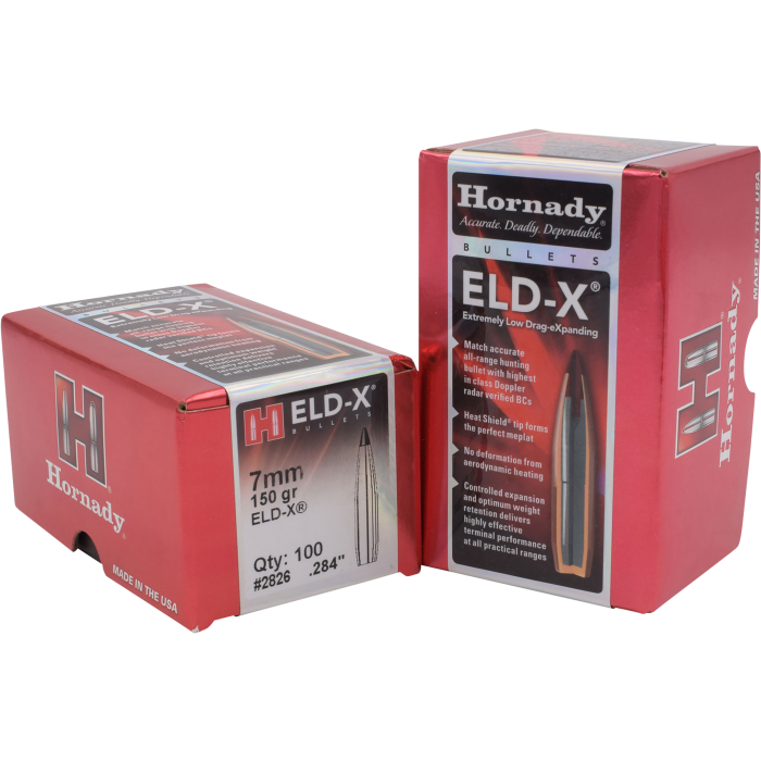 The 7mm (.284'') 150gr ELD-X bullets are designed for precision and performance, featuring a high G1 ballistic coefficient of 0.574 and a G7 ballistic coefficient of 0.289. Ideal for long-range shooting, these bullets are crafted with ELD-X technology, ensuring exceptional accuracy and terminal performance. Measuring 0.284 inches in diameter and weighing 150 grains, they offer a sectional density of 0.266, contributing to deep penetration and reliable expansion. Packaged in a convenient box of 100, these 284 caliber bullets are perfect for shooters seeking consistency and excellence in every shot.