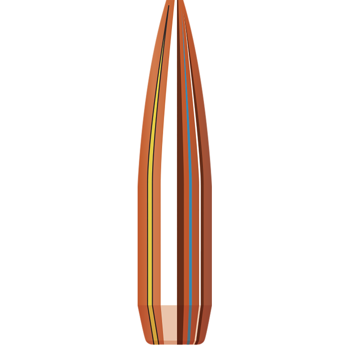 The Hornady Match .264 123 Gr Boat Tail Hollow Point bullet is expertly designed for precision shooting. Featuring a bullet diameter of .264 inches and a weight of 123 grains, this bullet is crafted with a lead core and a polymer tip to ensure superior performance. The copper coating enhances durability, while the AMP jacket material ensures consistent expansion. With a high ballistic coefficient of .506, this bullet offers excellent aerodynamic efficiency. Its sectional density of .252 contributes to deep penetration, making it an ideal choice for competitive shooters seeking accuracy and reliability.