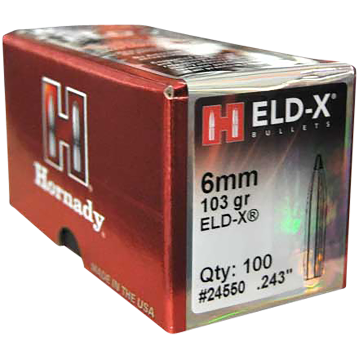 The Bianchi ELD-X 6mm 103 Gr Extremely Low Drag-eXpanding bullet is designed for hunters seeking precision and performance. With a bullet caliber of 6mm and a diameter of .243, this bullet features a lead core and a copper coating for optimal results. The AMP jacket material and heat shield bullet tip ensure stability and accuracy. With a sectional density of .249 and a ballistic coefficient of .512, these bullets offer superior aerodynamics. Packaged with 100 bullets per box, this product is ideal for those looking to enhance their hunting experience.