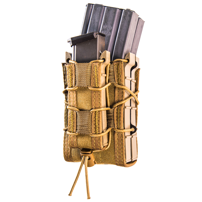The High Speed Gear TACO Triple Mag Pouch in Coyote Brown offers versatile and secure storage for your tactical needs. Crafted from durable nylon, this pouch features three compartments designed to hold a wide range of magazine types, including USGI, HK, PMAG, ARC, FAL, AK 30/40, LR20, and M14. Its MOLLE compatibility ensures easy attachment to your gear, while the dual modular rifle and single modular pistol mag pouches provide flexibility for carrying various accessories. Experience smooth and silent deployment with this robust and adaptable mag pouch.
