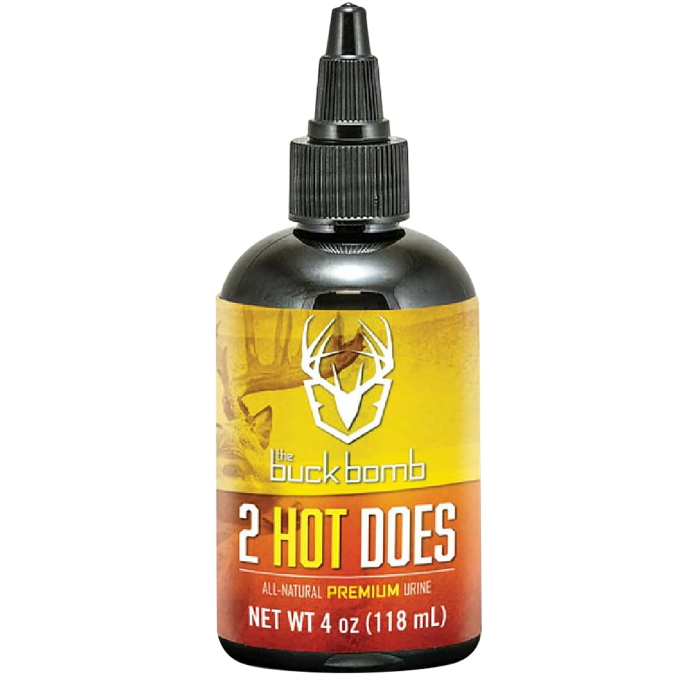 Enhance your hunting success with the Buck Bomb 2 Hot Does Attractant. This powerful deer attractant features urine from two estrus does, specifically designed to boost the appeal of mock scrapes from prerut through peak rut. The unique formulation triggers dominant behavior in mature bucks, increasing your chances of drawing them into range. Packaged in two convenient 2oz bottles and accompanied by four wicks, it ensures a long-lasting and effective scent dispersal. Perfect for serious hunters aiming to up their game this season.