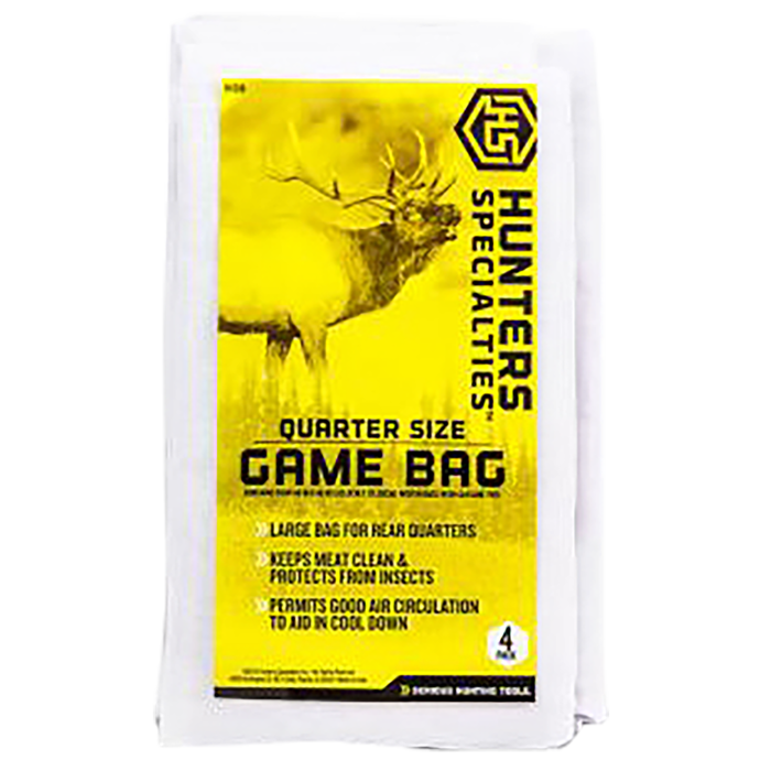 Designed for the serious hunter, these game bags are a must-have for your next big game adventure. Each pack includes four durable bags, measuring 40 by 48 inches, providing ample space to accommodate large game such as elk, moose, and caribou. The bags come with convenient closure ties to ensure your harvested meat stays clean and safe from insects. Made from high-quality materials, these white game bags are essential for maintaining the quality of your meat during transport from the field.