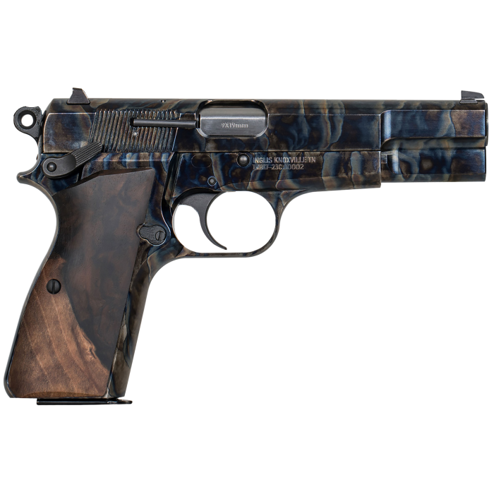 The Military Armament Corp GP-35 9mm is an exceptional choice for firearm enthusiasts, blending precision with classic style. This semi-automatic pistol boasts a 4.70-inch barrel and a robust 15+1 capacity, making it both reliable and powerful. Its distinctive color case hardened finish enhances durability while offering a unique aesthetic appeal. The GP-35 is fitted with Grade III Turkish Walnut grips, providing a comfortable and secure hold. It features a brass bead front sight and a blacked out U-notch rear sight for improved target acquisition. An ambidextrous safety lever ensures ease of use for both right and left-handed shooters. With serrated slide detailing and no bite ring hammer, this firearm is designed for optimal performance and user comfort.