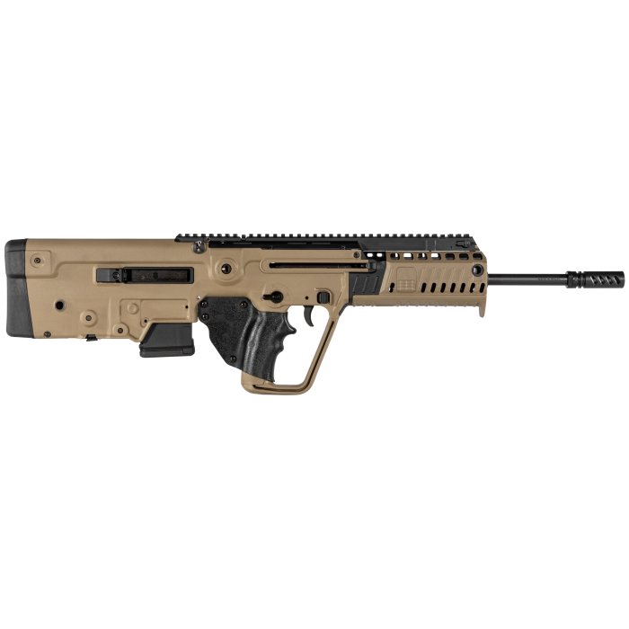 Gas piston operated, the Tavor X95 is built for reliability and versatility. It features adjustable backup iron sights (BUIS) with a folding front blade sight that includes a tritium insert, and an aperture rear sight, making it ready for any optic you choose to mount. This model boasts an 18.5" threaded barrel and a 10-round magazine capacity, making it California compliant. The firearm's overall length is 28.13", and it comes with a fixed bullpup stock in a brown finish, adding a unique aesthetic touch.