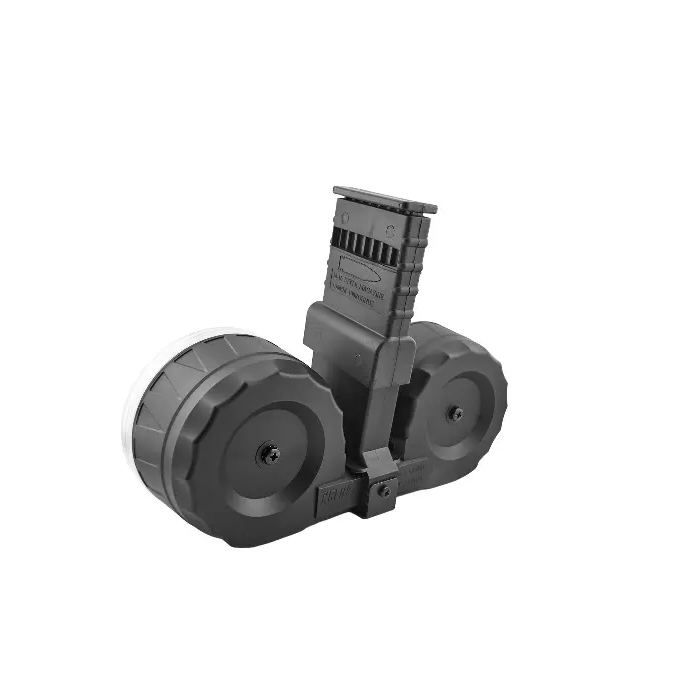 Introducing a robust and reliable drum magazine designed for serious shooting enthusiasts—this high-capacity magazine holds an impressive 100 rounds of 5.56mm ammunition. Built for durability and performance, its sleek black finish offers a tactical look while ensuring long-lasting use. The magazine's design facilitates smooth loading and feeding, making it an essential addition for those who value efficiency and reliability in high-pressure situations. Whether you're at the range or in competitive shooting environments, this drum magazine delivers unmatched capacity and functionality for your 5.56mm firearms.