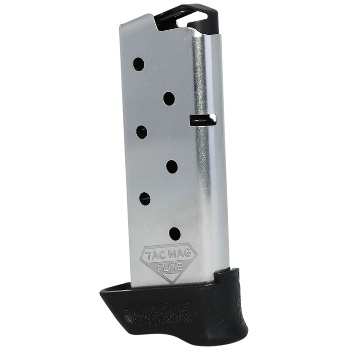 The Kimber Micro 9 TacMag is the ideal companion for those seeking reliability and precision in a compact form. This magazine is designed to accommodate 7 rounds of 9mm, ensuring ample capacity for extended shooting sessions. Crafted with attention to detail, its silver finish adds a touch of elegance while enhancing durability. Compatible with the Micro 9 series, this TacMag offers seamless integration and smooth operation, making it a must-have for firearm enthusiasts who value both performance and style.