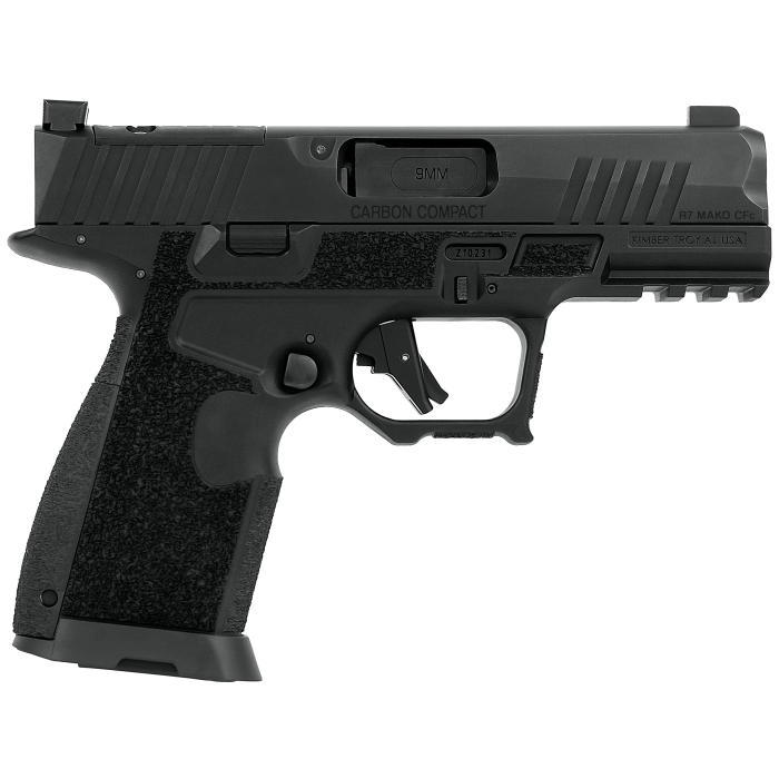 The Kimber R7 Mako Carbon Compact is a cutting-edge addition to the R7 lineup, tailored for everyday carry enthusiasts seeking top-tier performance and practicality. Its innovative carbon fiber infused matrix frame boasts incredible durability with a tensile strength of up to 60,000 lbs per square inch, making it exceptionally robust yet lightweight. The high undercut design offers unmatched ergonomics and control, ensuring a comfortable shooting experience.