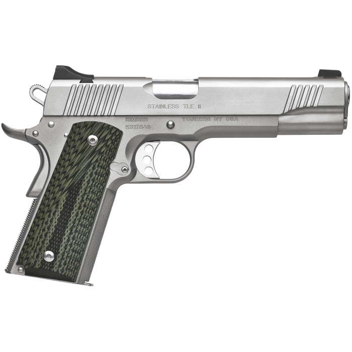 The Kimber TLE (Tactical Law Enforcement) 1911 stands out as a premium choice for duty carry, tactical applications, and personal protection. Featuring a Satin Silver frame finish and a 5-inch barrel, this .45 ACP pistol offers both durability and refined performance. Its 7+1 capacity ensures reliable firepower, while the precision-engineered flat top slide enhances accuracy and overall handling. Complemented by aggressively textured G-10 grips, the TLE provides a secure and confident hold, even in challenging conditions. This firearm seamlessly combines function and elegance, making it a standout in the tactical and defensive market.