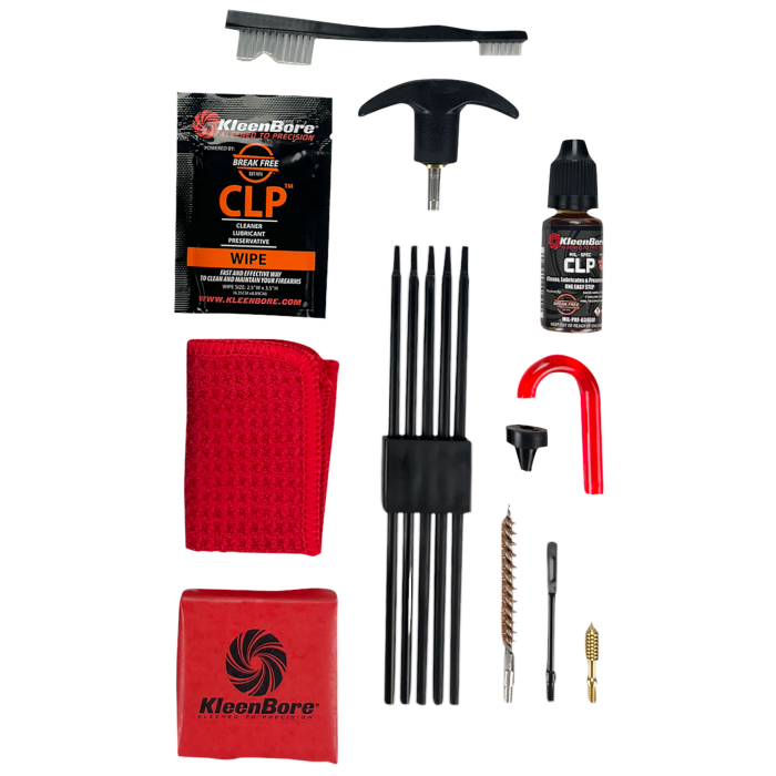 Elevate your rifle maintenance with the KleenBore Rifle Cleaning Kit, tailored specifically for .264, .270, and 7mm calibers. This comprehensive kit features a robust 30-inch black rigid rod, equipped with a swivel handle for effortless maneuverability. The kit includes a double-end nylon bristle brush, a phosphor bronze bore brush, and a convenient rod accessory adaptor designed to fit #8-32 threads. Safeguard your firearm's precision with the polymer muzzle guard and black steel patch holder, ensuring a thorough clean every time. The kit is neatly organized in a durable polypropylene case, alongside a 2 oz BrekFree CLP, silicone cloth, and high-quality cotton cleaning patches. Whether you're an avid hunter or a competitive shooter, this cleaning kit provides all the essentials to keep your rifle in peak condition.