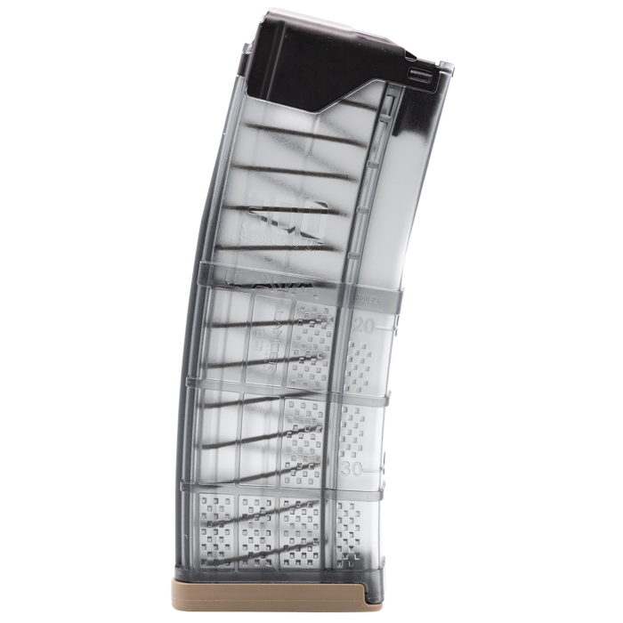 The L5AWM Magazine in Translucent Smoke offers a reliable and durable option for 300 Blackout enthusiasts, holding up to 30 rounds for extended shooting sessions. Crafted from high-strength polymer, this magazine combines lightweight design with exceptional impact resistance, ensuring consistent performance in various conditions. The translucent smoke finish allows for quick visual assessment of remaining ammunition, enhancing convenience and efficiency. Featuring an anti-tilt follower and stainless steel spring, it provides smooth and dependable feeding, making it an essential addition to any shooting kit.