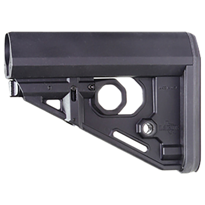 The Larue Tactical RAT Black Polymer AR15 Stock is precision-engineered for maximum performance and compatibility with the Larue Tactical AR15 series. Featuring a unique two-stage trigger mechanism, it allows for adjustable pull length in varied shooting positions. CNC-machined internals ensure seamless operation and reliable lockup on mil-spec receiver extension positions. Its internal cavity is engineered for a secure fit without extra locking systems. Ambidextrous 1/4 swivel sockets and sling slots provide versatile two-point sling attachment options. The rear butt plate includes a hidden compartment for convenient storage of cleaning kit components. Durable, sleek, and built for practicality.