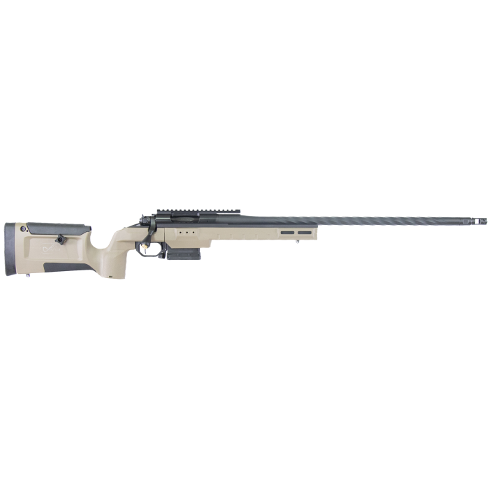 The Larue Tactical Siete Magnum 300 WSM is a precision-engineered bolt-action rifle built for exceptional performance. Chambered in 300 Winchester Short Magnum with a 1:8" twist, it features a 24" Sendero fluted barrel for improved accuracy and reduced weight. The rifle is finished in flat dark earth (FDE) and comes equipped with a Timney trigger for crisp and reliable firing. The proprietary muzzle brake minimizes recoil, while the Larue KRG Bravo stock ensures a solid and ergonomic feel for right-handed shooters. With an overall length of 44.875" and weighing 9 lbs, this firearm offers a 3+1 round capacity, ideal for hunting and long-range shooting scenarios. The heavy contour barrel paired with a proven design makes it a standout option for precision shooters.