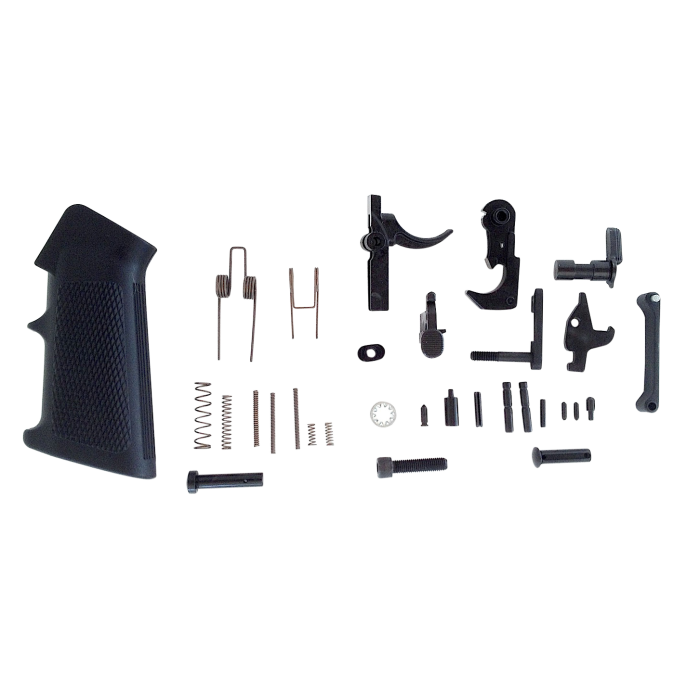 Get your AR-15 build off to a solid start with the LBE Complete AR15 Lower Parts Kit. This comprehensive kit includes all essential components needed for your lower receiver assembly, from a durable A2 pistol grip to a curved trigger. Designed for reliability and precision, it features high-quality parts like a disconnector with a matching spring, trigger pins, and a bolt catch with roll pins. Perfect for custom builds or replacing existing parts, the kit ensures smooth functionality with its precision-engineered components. Built tough in a sleek black finish to complement a wide range of firearm styles, this all-in-one kit provides convenience and performance at its finest. Match your expectations with top-tier craftsmanship built for AR-15 enthusiasts and shooters alike.