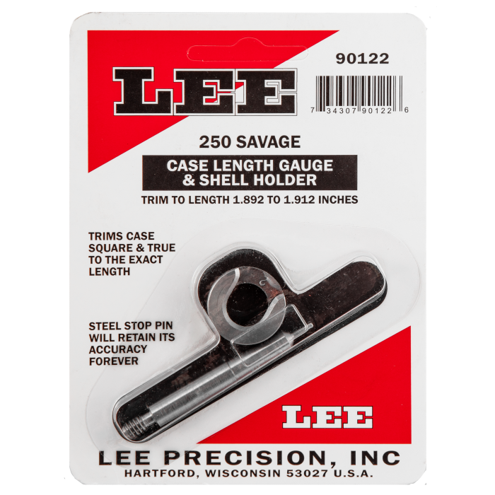 The Lee 250 Savage Case Length Gauge with Shell Holder is a reliable tool crafted from durable steel with a sleek silver finish. Designed to measure and trim brass cases with precision, this two-piece set includes a shell holder to ensure accuracy. Compatible with the Cutter/Lock Stud, it efficiently trims cases to the ideal length, from 1.892 to 1.912 inches, ensuring squared case mouths and optimal performance. Lightweight and easy to use, it’s an essential accessory for maintaining your 250 Savage casings.