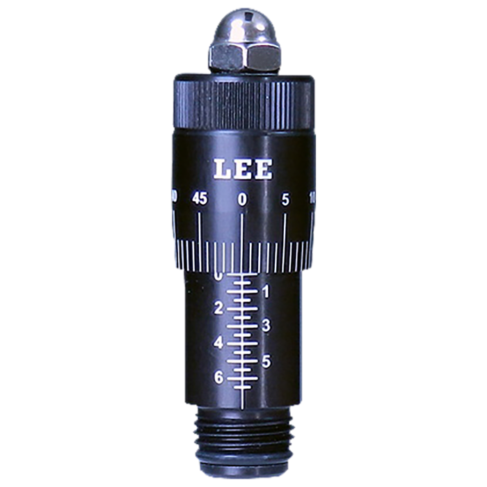 The micrometer adjust screw by Lee Precision replaces the original adjusting screw on any Lee bullet seating die. Infinitely adjustable allows precision bullet seating depth.