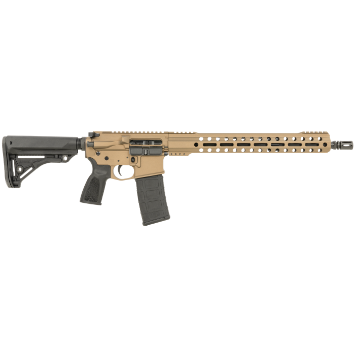The Battle Rifle Lite is purpose-built for accuracy and reliability in any situation. Featuring a 16-inch government profile barrel made from 4150 chrome moly vanadium steel, this AR-15 style firearm ensures smooth and reliable cycling thanks to its mid-length gas system, which also reduces perceived and felt recoil. The rifle's receivers are machined from durable 6061-T6 billet aluminum, providing a robust foundation for any demanding use.