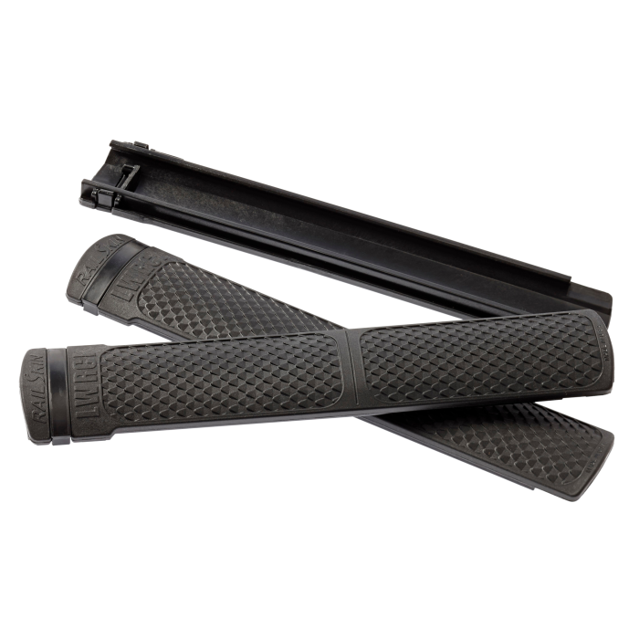 The LWRCI SnakeScale Railskins Rail Covers are designed for superior performance and durability. These innovative rail covers effortlessly slide onto Picatinny rails and lock securely in place, ensuring a stable fit during use. Featuring a distinctive snake scale pattern, they deliver a reliable non-slip grip, even in wet or oily conditions. Constructed from a cutting-edge space-age polymer, these covers are built to withstand extreme conditions and are nearly unbreakable. Their heat-resistant properties allow them to endure intense firing sessions while maintaining a narrow profile for optimal air circulation and barrel cooling. The package includes three railskins, finished in sleek black, offering a perfect fit for Picatinny or Weaver rails.