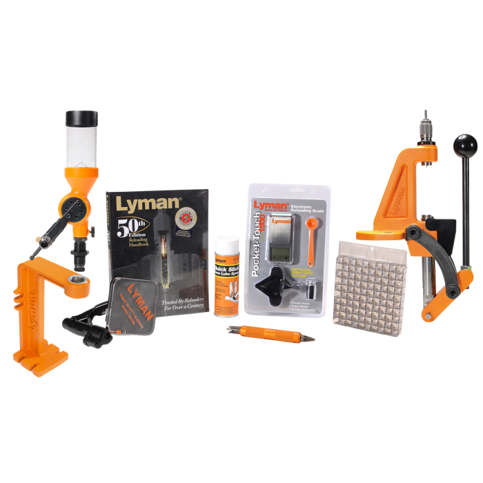 The Lyman Brass Smith Ideal Press Kit offers a comprehensive solution for both novice and seasoned reloaders. Its compact and sturdy design, crafted from durable cast iron and steel, ensures reliable performance while saving bench space. The press is engineered for precision with features like compound linkage for maximum leverage, a large diameter ram, and an ample press opening to accommodate a wide range of calibers. The ambidextrous handle design and comfortable ball handle enhance usability for any reloading enthusiast. Compatible with standard dies and shell holders, this kit includes essential accessories such as the Brass Smith Powder Measure, EZEE Prime Hand Priming Tool, 50th Edition Reloading Handbook, Pocket Touch 1500 digital scale, and more, providing everything needed for efficient and accurate reloading.