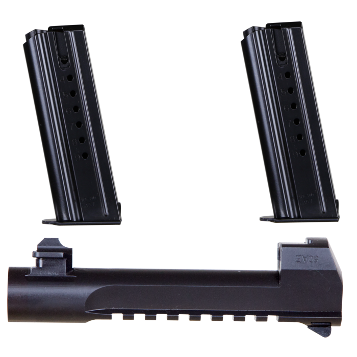 Upgrade your Mark XIX Desert Eagle .44 Magnum with this .50AE conversion kit for enhanced performance and power. Featuring a sleek 6-inch black barrel, this kit transforms your firearm into a formidable force. With two 7-round magazines included, you'll experience improved capacity and reliability. Crafted with precision, the black barrel and slide ensure durability and a polished appearance, making it a standout choice for enthusiasts seeking to elevate their shooting experience.