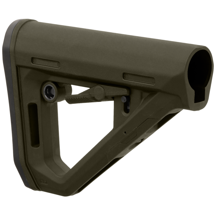 The Magpul DT Carbine Stock in Olive Drab Green offers a seamless upgrade for AR15, M16, and M4 carbines, catering to those who value precision and durability. Designed with dual tensioning technology, it stands out by providing enhanced stability and strength, ensuring a rugged performance even in demanding conditions. The A-frame style design incorporates an auto-engaging friction lock, which reduces movement and enhances the stock's lock-up with the receiver extension. This leads to quick, smooth, and frictionless adjustments for a personalized length of pull. The stock's non-slip buttpad mirrors the SL line's footprint, incorporating the CTR's optimized curvature for improved comfort. Additional features include an ambidextrous adjustment lever, a rotation-limiting QD sling mount, and a 1.25-inch footman's loop, making it a versatile choice for AR platform enthusiasts seeking reliability and ease of use.