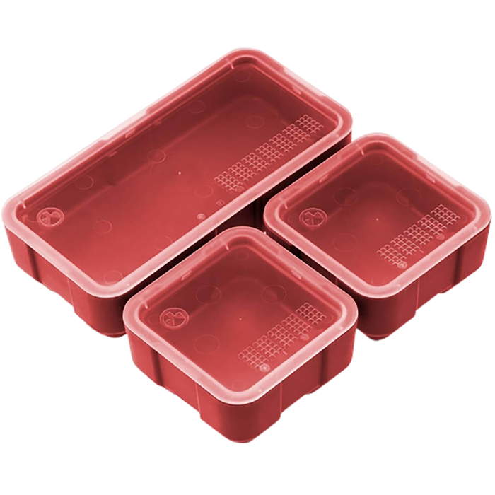 The Magpul DAKA Storage Polymer in Red is crafted to secure loose parts, gear, ammo, and other items within Hard Cases or any case equipped with the Magpul DAKA GRID Organizer. Constructed from durable polymer, these bins are built for rigorous use, featuring 0.1-inch thick walls to provide robust protection for your belongings. The DAKA Bins come with transparent lids that make content identification straightforward, while the reinforced lid snap tabs ensure a secure closure with the bin sides. This set includes one 2x4 bin and two 2x2 bins, offering versatile storage solutions for your needs.