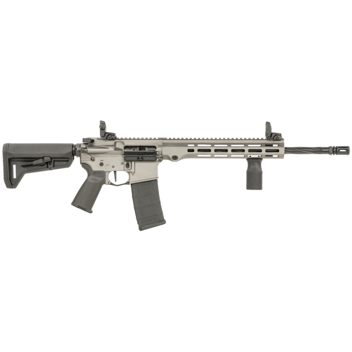 The MD-15 features an A2 flash hider, M-RAX and M-Slot compatible handguard, and military-grade materials, making it a robust and dependable choice. Equipped with a Radian charging handle, Magpul stock, grip, and sights, this rifle is designed for optimal functionality and ease of use. The Blackout Defense flat 3.0 lb trigger and fully floated barrel enhance accuracy and shooting experience, while the Lancer 30-round magazine ensures ample ammunition capacity.