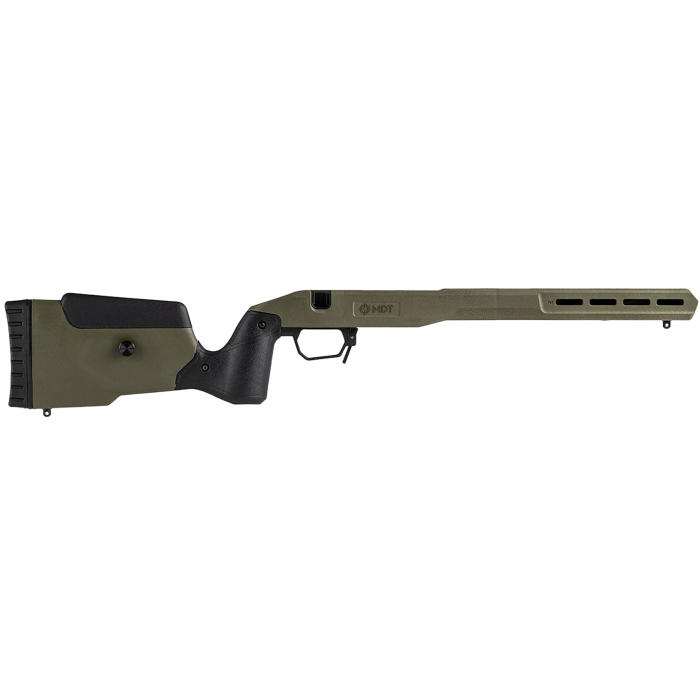 The MDT Field Stock Chassis System in Olive Drab Green is expertly designed for the Ruger 10/22, providing a perfect blend of traditional aesthetics and modern functionality. Crafted from durable polymer, this stock offers exceptional comfort and warmth, even in cold weather conditions. Enhance your shooting precision with the integrated aluminum v-block bedding and enjoy the benefits of a free-floating barrel. The adjustable buttstock ensures a personalized fit, ideal for long-range accuracy. Whether you're into hunting, competitive shooting, or casual plinking, this stock is versatile enough to support any discipline. With M-LOK forend compatibility and included sling swivel studs, customization options for accessories are limitless, making it a superior choice for any shooter.
