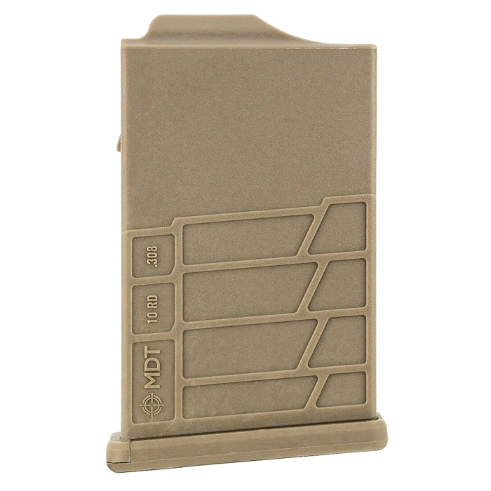 Upgrade your firearm setup with the MDT AICS Mag Gen2 FDE Polymer 10rd. Precision-engineered for compatibility with short action calibers like .308 Win, 6.5 Creedmoor, 243 Win, and more, this magazine delivers exceptional functionality. Designed with premium high-strength polymer featuring a high glass content, it ensures unparalleled durability and reliability even under extreme conditions—it's been tested under vehicles to prove its toughness. Equipped with a tempered steel spring, this magazine guarantees consistent performance. Perfectly compatible with MDT chassis systems like TAC21, ESS, ACC, and LSS models, it’s a trusted choice for professional and avid shooters. Optimized for lasting durability and seamless fit, this magazine pairs quality and strength for exceptional performance every time.