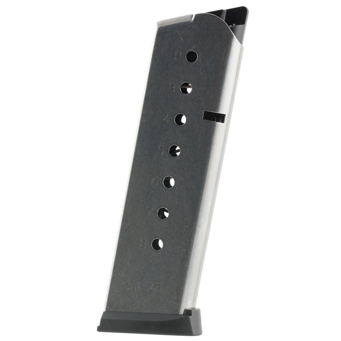 This MecGar magazine is designed for the 1911 Government model and offers a reliable 8-round capacity for .45 ACP caliber firearms. Crafted from durable stainless steel, it features a sleek finish that complements the classic Colt design. Whether you're at the range or relying on it for personal defense, this detachable magazine ensures smooth and consistent feeding for your Colt 1911, enhancing both performance and reliability.