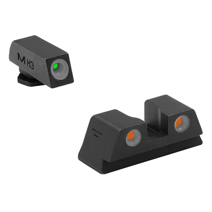 The Mepro Tru-Dot Night Sight Set is a top-tier choice for Glock 42/43 owners seeking reliable performance in any lighting condition. Engineered with precision, these sights offer exceptional brightness with their tritium illumination, ensuring clear visibility both day and night. The front sight features a green tritium with a white outline, while the rear sight is highlighted with an orange tritium and white outline, creating a sharp contrast for quick target acquisition. Constructed from durable steel, this sight set is drop-proof and shockproof, designed to withstand rigorous use without compromising performance. The snag-free design facilitates smooth and fast draws, making it an ideal addition for anyone looking to enhance their pistol's accuracy and functionality. With Swiss-made tritium vials providing a 12-year illumination guarantee, these sights are maintenance-free and require no batteries, ensuring they are always ready when you need them. Designed to fit seamlessly with your Glock Slimline models, this sight set offers a straightforward installation without the need for slide modifications.