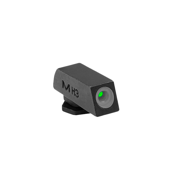 Enhance your Glock pistol's performance with the Mepro USA Tru-Dot Green Tritium Front Sight. Crafted from durable steel with a sleek black finish, this sight is specifically designed for reliable illumination in any lighting condition. The front sight features a green tritium insert with a white outline, ensuring quick and accurate target acquisition both day and night. The robust tritium source allows for visibility in low light scenarios, providing the confidence needed for critical situations. Built to withstand the demands of regular use, this fixed sight is shockproof, drop-proof, and fits seamlessly into any holster. With its snag-free design and premium Swiss-made tritium, this sight is a maintenance-free upgrade that requires no batteries, offering continuous readiness 24/7. Specifically engineered to fit Glock models chambered in 9mm, .40 S&W, .357 SIG, and .45 GAP, the Mepro Tru-Dot Front Sight is a reliable choice for those seeking precision and durability.
