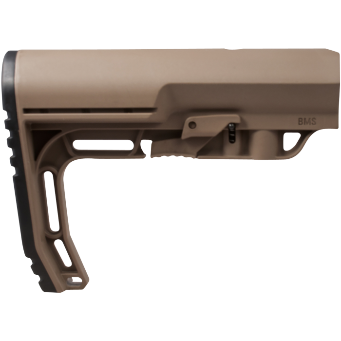 Elevate your AR-15 with the Mission First Tactical Minimalist Stock in Scorched Dark Earth. Crafted from military-grade reinforced polyamide, this stock offers unparalleled durability and adaptability. Designed as a slide-on replacement for traditional collapsible stocks, it features a non-slip rubberized buttpad for quick shoulder transitions. The Quick Detach Sling mounting point is strategically positioned for easy access by both left and right-handed shooters. Enhance your firearm's functionality with custom accessory mounts and an optimized sling configuration, ensuring your setup is as versatile as your mission demands.