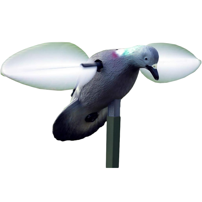 Enhance your hunting experience with the Mojo Outdoors Realistic Pigeon Decoy, designed to mimic the natural appearance and movement of a Wood Pigeon. Crafted from durable plastic in a striking multi-color design, this decoy features magnetically connected wings powered by a variable speed motor. With the capability to run up to 16 hours on just four AA batteries, it's perfect for extended use in the field. The included three-piece metal mounting pole ensures easy setup, while the heavy-duty on/off switch adds convenience. This motion-activated decoy is a must-have for serious hunters seeking realistic simulation.