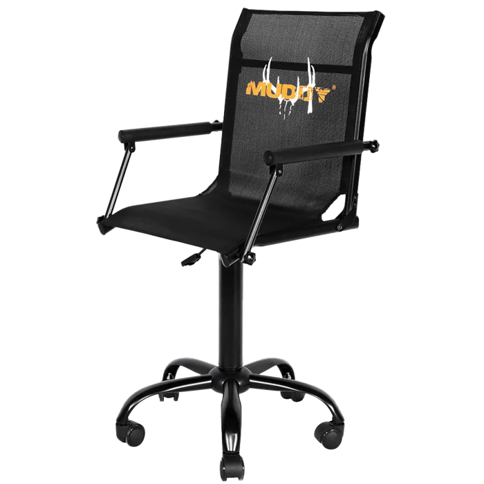 Enhance your hunting experience with this versatile Swivel Roller Chair. Designed for seamless movement, it allows you to silently glide from one position to another, ensuring you never miss a shot. This chair features a 360-degree swivel function and adjustable height, offering customized comfort and flexibility. The seat, crafted from durable FlexTek material, measures 18 inches in height, 18 inches in width, and 14 inches in depth, providing optimal support. Paired with a sturdy steel frame, this chair is a reliable companion for your outdoor adventures. Its sleek black design complements any setting, making it both functional and stylish.