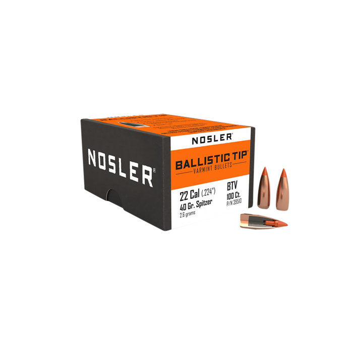 Nosler Ballistic Tip 22 Cal 40gr Spitzer 100/Box