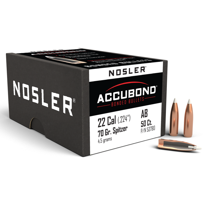 Nosler 22 Caliber 70gr AccuBond Spitzer 50/Box