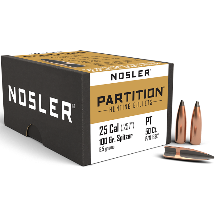 Nosler 25 Cal 100gr Partition Spitzer Hunting Projectiles