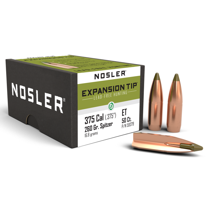 Nosler E-Tip 375Cal 260gr Lead-Free Spitzer Boat Tail 50ct