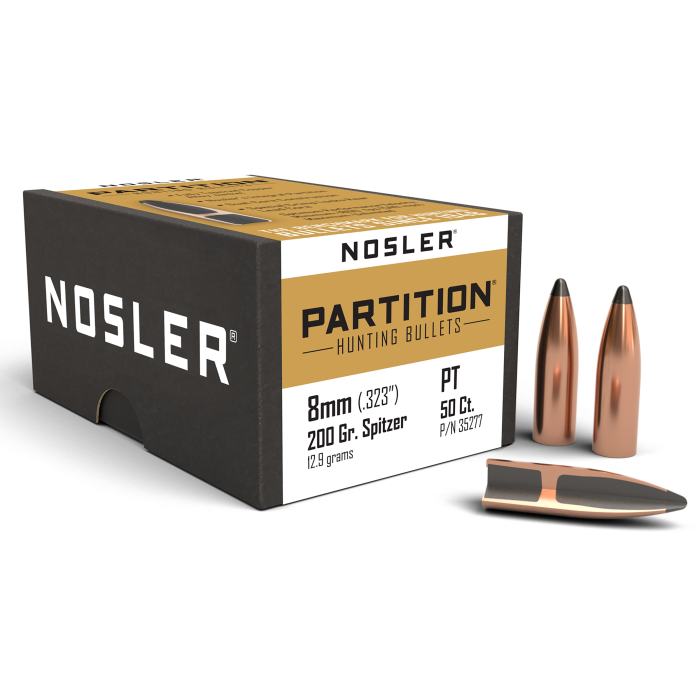 The Nosler Partition 8mm 200 Gr Partition Spitzer is expertly designed for hunters seeking reliable performance. This bullet features a copper jacket and a lead core, providing excellent weight retention and controlled expansion. With a caliber of 8mm and a bullet diameter of .323, it ensures precision and impact. The Partition Spitzer design enhances aerodynamics and accuracy, making it ideal for hunting applications. Each box contains 50 bullets, offering ample supply for your hunting needs. Whether targeting big game or smaller quarry, the Nosler Partition delivers consistent results.
