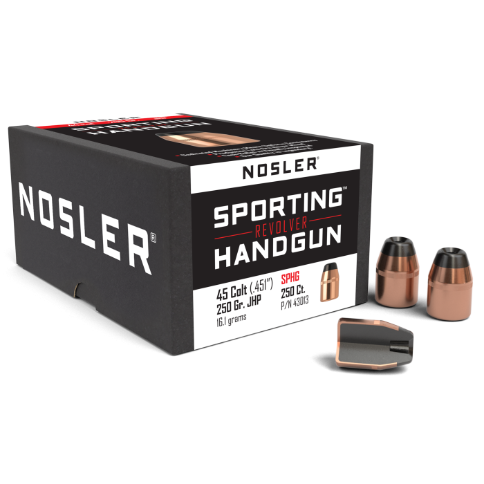 Nosler 45 Colt 250gr JHP Sporting Revolver Projectiles 100/Box