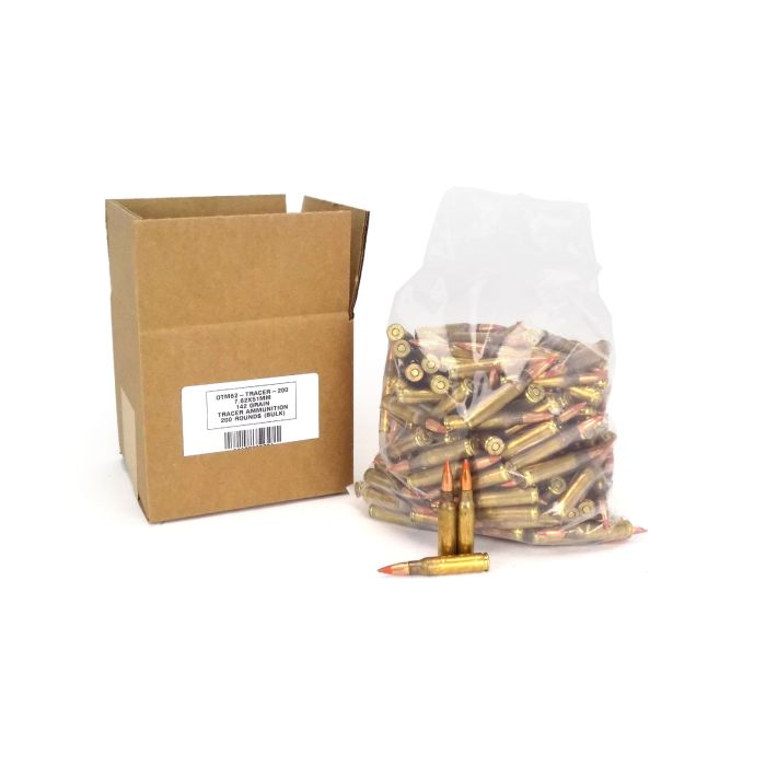On Target .308/7.62 NATO 142 Grain Tracer rounds are USA-made and use new and reloadable brass cases. Historically, tracers are used for shooting at night, so the shooter can see where the rounds are headed since spotting impacts can be impossible at night. Tracer rounds are also an excellent way to learn about the specific range and trajectory of a certain grain weight or to test a new outdoor range for ricochet potential. Many police officers and soldiers have also used tracers to mark the last few rounds in a magazine, so they see the red-burning projectiles and can maneuver to reload, instead of being surprised by a dreadful "click" with no bang while still outside of cover.
