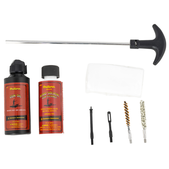 Experience precision cleaning with the Outers Aluminum Rod Pistol Kit, designed specifically for .22 caliber pistols. This comprehensive kit features a lightweight aluminum cleaning rod, perfect for maintaining the integrity of your firearm. The bronze bore brush ensures effective removal of fouling, while the wool blend mop and spear pointed jag provide meticulous care. The kit also includes a slotted patch loop and microfiber absorbent patches for thorough cleaning. Paired with a 2oz Nitro Solvent Gun Cleaner and Gun Oil, this kit delivers everything you need to keep your pistol in top condition. Ideal for firearm enthusiasts seeking quality maintenance tools in a compact package.