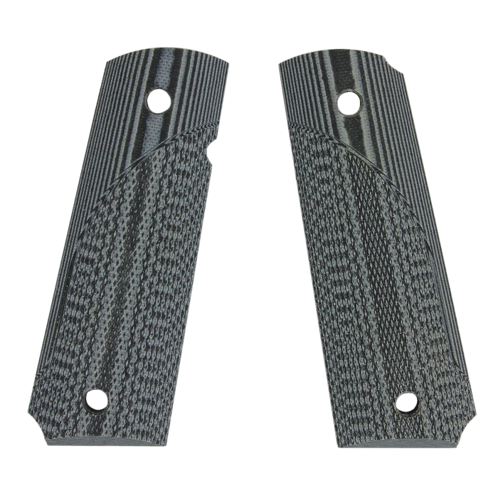Enhance your 1911 with Pachmayr's Tactical G10 Checkered Grip Panels. Crafted from robust G10 material, these grips are designed to withstand moisture, weather, and chemicals, ensuring long-lasting durability. The fine checkered texture offers a secure grip, while the sleek black and gray finish adds a touch of modern style. Perfect for everyday carry, these grips combine functionality and aesthetics, making them an ideal choice for firearm enthusiasts seeking both comfort and performance in their gear.