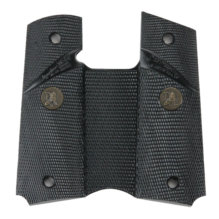 The Pachmayr Signature Black Checkered Rubber 1911 Grip offers a superior hold with its expertly crafted wraparound design, tailored specifically for semiautomatic pistols. Made from a high-quality rubber compound, this grip delivers the distinctive feel Pachmayr is renowned for, ensuring a comfortable and secure handling experience. Reinforced with built-in steel inserts, it maintains its shape and durability over time. The checkered finish enhances grip traction, making it a reliable choice for precision and control. Ideal for those seeking a custom fit, this grip is engineered to complement the natural design of the 1911 model, providing both functionality and style.