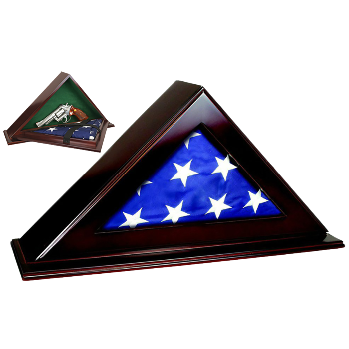 Peace Keeper Patriot Flag Case Mahogany Wood Gun Vault 22x4.25x11.5