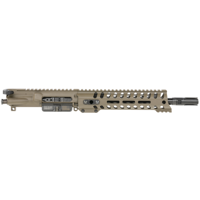 The Patriot Ordnance Minuteman 5.56 NATO Upper Assembly is designed for those seeking to enhance their AR15 platform with top-tier performance and reliability. Built with a 4150 nitrided steel barrel, this upper assembly promises durability and precision. The three-pronged flash hider reduces muzzle flash, while the Strike Eagle ambidextrous charging handle ensures quick and comfortable operation. This assembly is chambered for 5.56x45mm NATO using direct impingement technology for efficient cycling. The Renegade rail offers MLOK compatibility for versatile accessory attachment and includes four integrated quick-detach sling mounts for easy handling. Finished in a distinctive Patriot Brown, this MILSPEC-compliant upper receiver is engineered to elevate your build beyond the ordinary.