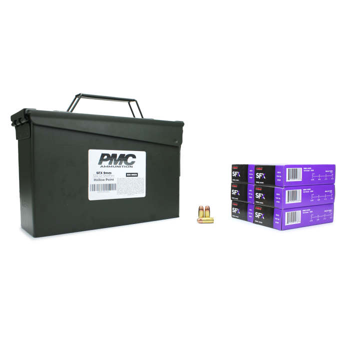 The PMC SFX 9mm subsonic ammunition delivers smooth and reliable performance engineered specifically for semi-automatic handguns. Featuring 147 grain StarFire hollow point bullets with 996 FPS muzzle velocity, this subsonic load is packaged in a convenient 300-round heavy duty ammo can for easy storage and transport.