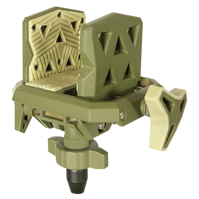 Experience unparalleled stability with the Primos Edge Gun Clamp, designed for use with an aluminum tripod shooting stick. Featuring the innovative Spartan Magnetic Attachment System, this clamp allows seamless transitions between rifles, optics, and cameras. The Apex model boasts a friction-adjustable ball joint, offering a fluid 360-degree range of motion with comprehensive elevation, depression, and cant adjustments. Instantly convert your APEX Spartan Head into a robust platform for optics and cameras. Equipped with the Classic Rifle Adapter 65907, this brown clamp ensures a reliable and versatile shooting experience.