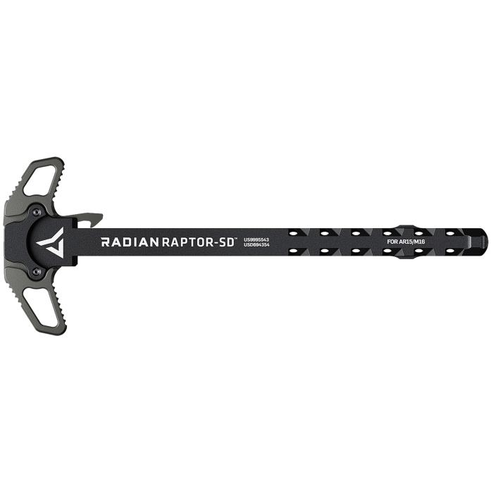 Experience precision and comfort with the Radian Weapons Raptor SD Charging Handle in sleek gray. Engineered for optimal performance with suppressed firearms, its ported shaft effectively directs gases forward and away from the shooter. Crafted from durable 7075-T6 aluminum with a polymer overmold, this handle offers exceptional strength and reliability. Its ambidextrous design ensures seamless operation from any angle, allowing for quick and efficient weapon handling. Whether you're a left- or right-handed shooter, the Raptor SD provides the versatility and control needed for a superior shooting experience.