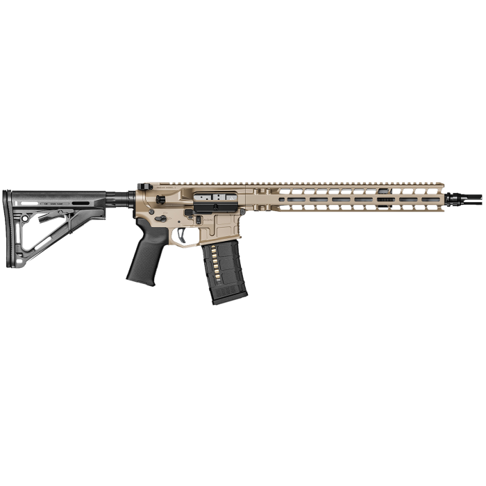 The Radian Weapons Model 1 stands out as a masterpiece of engineering and precision among modern firearms. Highlighting its versatility, the fully ambidextrous controls ensure seamless operation for both left- and right-handed users, while the cerakoted upper, lower, and handguard form a flawless and aesthetic color match. Its extended aluminum handguard integrates the Magpul M-LOK modular mounting system, providing exceptional adaptability for tactical attachments, paired with a stainless steel anti-rotation pin for enhanced durability.